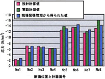 設計計算よりも若干大きめの値を示したものの、許容値を外れるような個所はない。