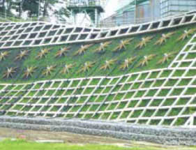 軽量化と施工コスト縮減/斜面の安定と全面緑化を実現。