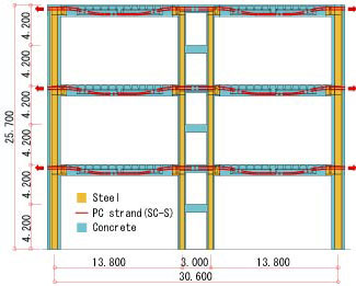 鉄骨とプレストレスコンクリートの組合せで耐震性と施工中の安全を確保